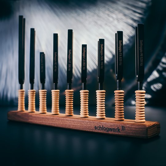 Kiekvienas kamertonas tiksliai suderintas, kad generuotų švarų, stabilų ir ilgai išliekantį rezonansą. Komplekte esantis medinis stovas leidžia patogiai laikyti ir saugoti kamertonus, taip pat elegantiškai juos eksponuoti studijoje ar terapinėje erdvėje.