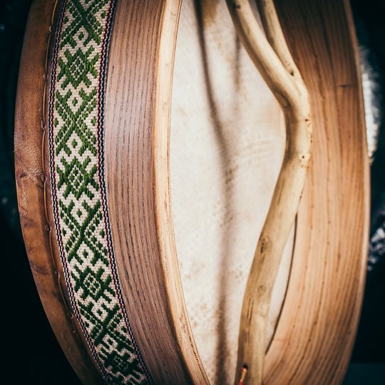 Šis aukštos kokybės, rankų darbo Šamaniškas Būgnas pasižymi nuostabiai meistriškai apdirbtu uosio medžio korpusu, kuris garsėja savo tvirtumu ir rezonansiniu tonu. Natūralus uosio medžio raštas papildomai išryškina būgno unikalumą, o švelni ir elastinga veršiuko oda suteikia turtingą, gilų garsą. Meistriškai pagamintas kvalifikuotų amatininkų, šis būgnas sukurtas taip, kad teiktų stiprią ritminę vibraciją ir dvasinį ryšį, todėl jis yra puikus įrankis ceremonijoms ar asmeninėms meditacijos praktikoms, ir kitoms transformacinėms patirtims.